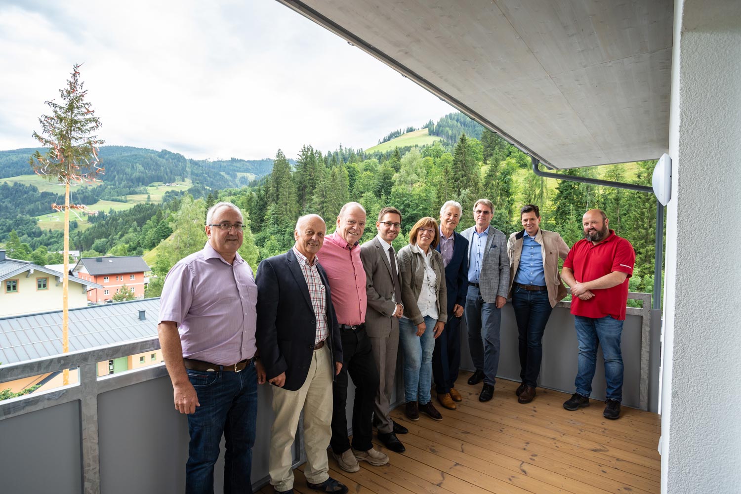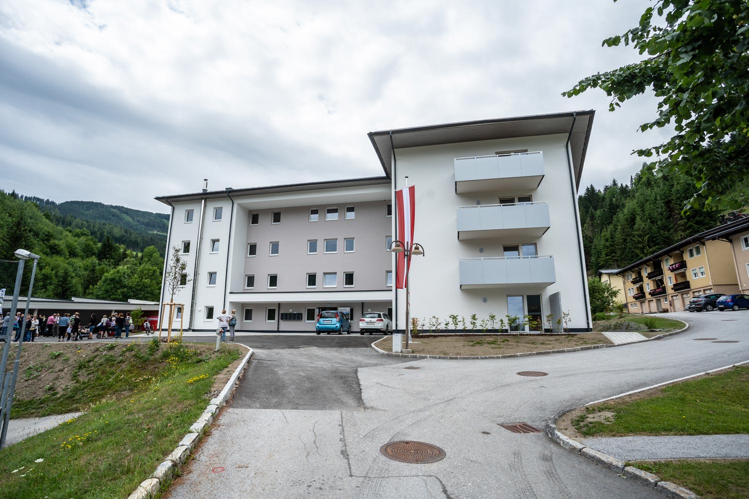 Die Wohnbau Genossenschaft Bergland übergab kürzlich in der Wohnanlage „Werksiedlung“ im Herzen von Mühlbach am Hochkönig ein aus 24 hochwertigen Mietwohnungen bestehendes Objekt mit insgesamt knapp 1.406 m² Wohnfläche an die glücklichen Mieter. Das Gebäude erstreckt sich auf 4 Geschosse, welche barrierefrei errichtet wurden und sind sämtliche Etagen mit einem Personenaufzug mühelos erreichbar. Die 2- und 3-Zimmerwohnungen weisen eine Größe von 52-69 m² Wohnnutzfläche auf und verfügen über großzügige Terrassen oder Balkone. Weiters stehen Carportsabstellplätze für die Mieter sowie auch Parkflächen im Freien für Besucher zur Verfügung. Das Bauvorhaben wurde auf energetisch und bautechnisch hohem Niveau konzipiert. Sämtliche Wohnungen sind mit einer Fußbodenheizung ausgestattet, welche individuell von jedem Mieter durch Raumthermostate reguliert werden kann. Die Wärmeversorgung erfolgt über eine moderne Pelletsheizung und wurde auch eine Photovoltaikanlage zur Energiegewinnung angebracht. Die Bauarbeiten wurden mit November 2017 gestartet und in einer Bauzeit von 20 Monaten fertiggestellt. Die Errichtungskosten belaufen sich auf rund € 3,7 Mio., welche zum Teil mittels eines Zuschusses durch das Land Salzburg gefördert wurden.
