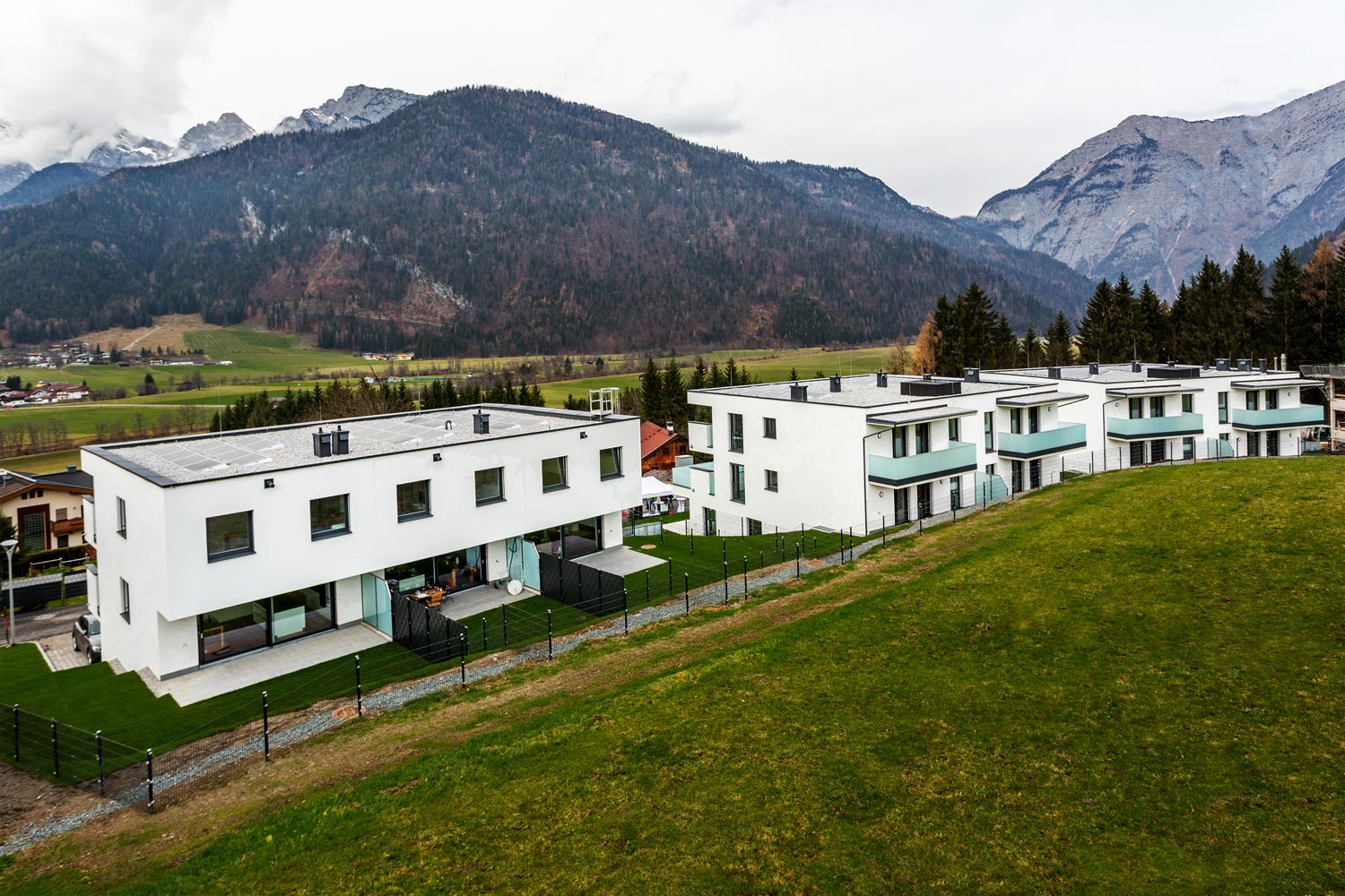 Die Wohnbau Genossenschaft Bergland errichtet in Wiesing in Saalfelden eine Wohnanlage mit insgesamt 5 Mehrfamilienwohnhäusern und 7 Reihenhäusern inklusive zweier Tiefgaragen. Kürzlich wurde nunmehr die erste Bauetappe bestehend aus 2 Mehrfamilienwohnhäusern mit jeweils 6 Wohneinheiten und 3 Reihenhäusern mit insgesamt knapp 1.214 m² Wohnfläche fertiggestellt und an die glücklichen Eigentümer übergeben.