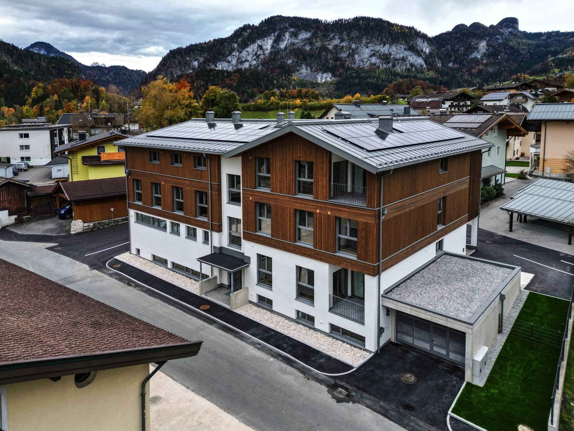 Das barrierefreie Gebäude erstreckt sich über drei oberirdische Geschosse und ist mit einem Aufzug ausgestattet. Großzügige Balkone und Terrassen erweitern den Wohnraum nach außen. Die Wärmeversorgung erfolgt über das Fernwärmenetz der Biomasse Unken, ergänzt durch eine Photovoltaikanlage am Dach. Alle Wohnungen verfügen über eine warmwasserdurchströmte Fußbodenheizung, die individuell regulierbar ist.