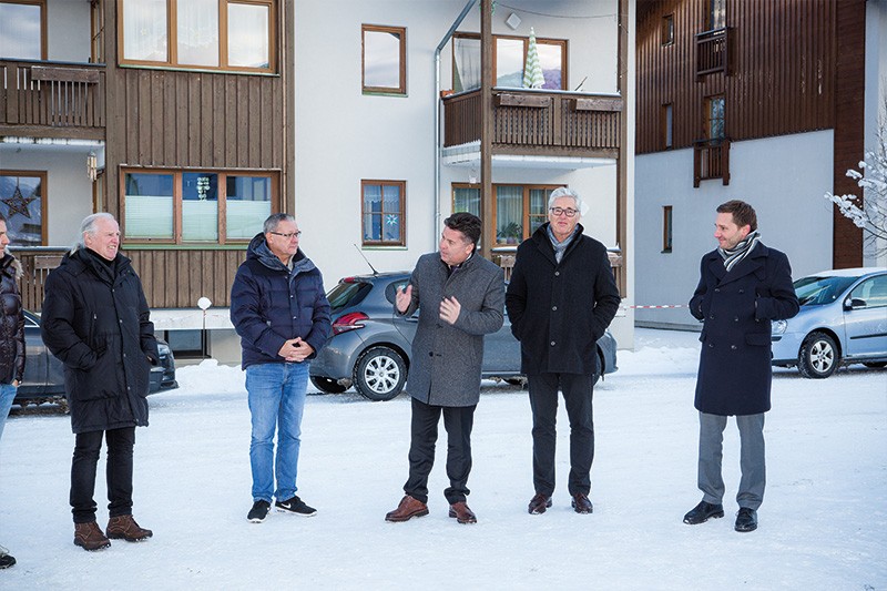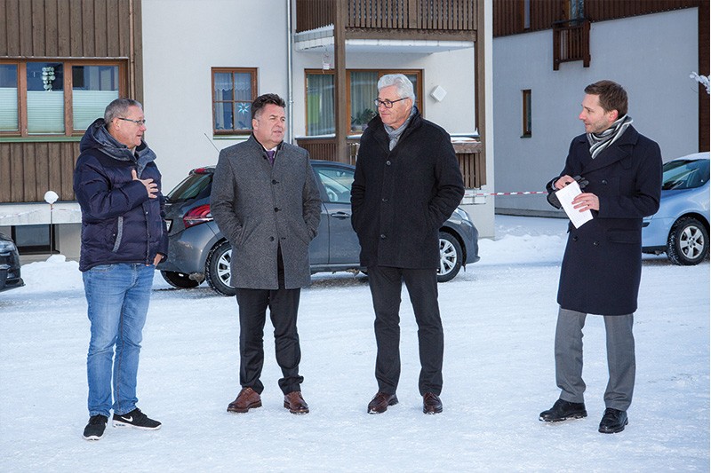 Arch. DI Peter Stich (Architekt), DI Franz Innerhofer (Bauleiter Wohnbau Bergland), MMag. Dr. Philipp Radlegger (GF/